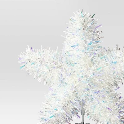 Illuminate your holiday tree with this 10-Inch Pre-Lit Iridescent LED Tinsel Star Christmas Tree Topper from Wondershop™. This iridescent Christmas tree topper features a five-point tinsel star that’s pre-lit with LED lights to cast a sparkling festive glow. Add this decorative tree topper to your holiday tree in your entryway, living room or family room to bring some Christmas cheer.