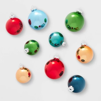 Get a versatile option for your styling your holiday tree with the 42-Count Round Glass Christmas Tree Ornament Set from Wondershop™. This set includes 42 ball ornaments handcrafted from glass in a variety of colors. The simple design makes them easy to pair with a wide variety of ornaments, lights and garlands, and they’re equipped with top metal loops that you can attach hooks to for easy hanging.