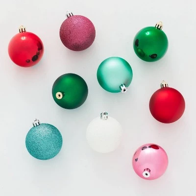 Infuse your ornament collection with classic Christmas style with this 50-Count Shatter-Resistant Ball Christmas Tree Ornament Set from Wondershop™. This set includes 50 plastic ball ornaments with varied colors and designs, all of which feature a shatter-resistant construction for lasting use. Perfect for families with young kids or pets, the ornaments are designed for indoor use only.