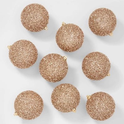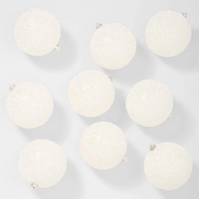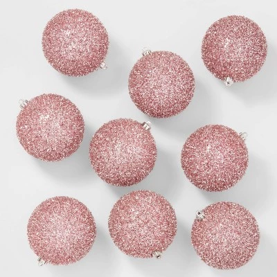 - Includes 9 plastic ball ornaments with sparkly tinsel design