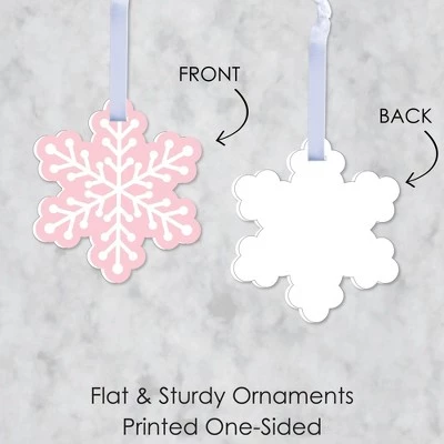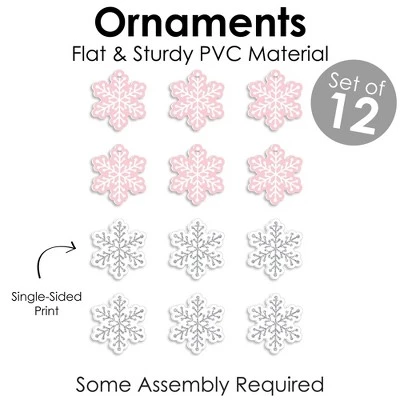 Pink Winter Wonderland Ornaments INCLUDE 12 sturdy, flat, and professionally printed single-sided snowflake ornaments. 12 satin ribbon strands are included for easy DIY hanging. TREE DECORATIONS: Deck the tree with Pink Winter Wonderland Christmas tree ornaments. With the included pre-cut ribbon strands, thread the ribbon through the ornament’s slit. Tie the ribbon ends together and hang the ribbon loop on a Christmas tree branch. ORNAMENT SET: Hanging ornaments is a magical part of holiday decorating. Easily dress up your Christmas tree with Pink Winter Wonderland Ornaments. This flat ornament set can be used for all kinds of holiday decorating. Use to embellish Christmas stockings or as a fun gift wrap accessory. PREMIUM HOLIDAY DECOR: Pink Winter Wonderland Ornaments are made of flat and sturdy PVC material. Holiday Ornaments are professionally printed on 1 side, back will be white. This set of 12 snowflake ornaments includes satin ribbon for DIY assembly and hanging. MADE IN THE USA: Pink Winter Wonderland Christmas Ornaments are designed and manufactured at our Wisconsin facility using materials that are Made in the USA. Pink Winter Wonderland Ornaments use a No-Mess Glitter Print: Our ornament decorations are designed with a printed image of glitter, eliminating glitter flake while maximizing bling effect!