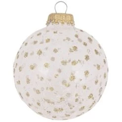 It’s snowy and frosty! Before you take a guess, it’s holiday time! With lovely laces and sparkles all over, you cannot get over these dazzling ball ornaments. This alluring decor set is ideal for your trees, garlands, wreaths, and other decor spaces.Product Features:4-piece set Color: white and goldComes in 2 finishes: clear and frostPrinted with gold sparklesBalls are equipped with gold ornament caps Ornaments come ready-to-hangGreat addition to your holiday decorationsSilvered on the inside giving them the absolute best color definition possibleCrafted from molten glass (not a mold) for a stylish, seamless design that enhances their beautyRecommended for indoor decorative use onlyMade in the USADimensions: 2.5″ (60mm) diameterMaterial(s): glassSet includes 2 of each finish for a total of 4 ornaments