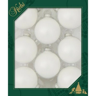 Bright and beautiful, these ball ornaments are all set to spread their alluring charm. These lively additions are a boost to your creative instincts. Accent this lovely set of ornaments to your trees, hallways or stairways and spread the magic of love and happiness.Product Features:8-piece setColor: whiteFinish: satinBalls are equipped with silver crown capsOrnaments come ready-to-hangSilvered on the inside giving them the absolute best color definition possibleCrafted from molten glass (not a mold) for a stylish, seamless design that enhances their beautyGreat addition to your holiday decorationsRecommended for indoor decorative use onlyMade in the USADimensions: 2.63″ (67mm)Material(s): glass