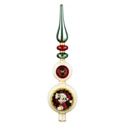Our stars shine brightly on this elegant Mickey and Minnie holiday tree topper. In bas relief, the timeless twosome burst out to welcome your family and top off your Christmas tree creation! Part of the Vintage Mickey Christmas Collection. Metallic accents. Ornate sculpted tree topper ornament. Genuine, Original, Authentic Disney Store Product.