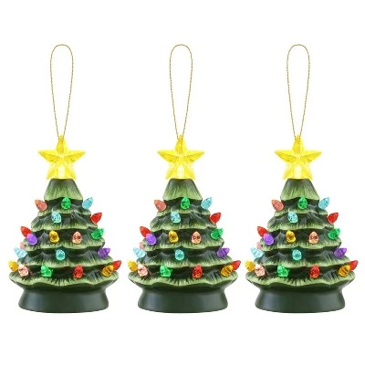 - Set of 3 vintage-inspired ceramic Christmas tree ornaments will light up your holiday décor