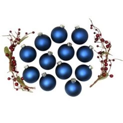 Such enchanting holiday glass ball ornaments complement your holiday decorations. These balls are hued in bright colors with a shiny finish and are fitted with gold ornament caps. Use a matching cord to hang those beautiful ornaments for added elegance in your house!Product Features:12-piece setColor: midnight blueFinish: matteBalls are equipped with gold ornament caps Recommended for indoor decorative use onlyDimensions: 2.75″ (70mm) diameterMaterial(s): glassNote: ornament pictured is 1.5″ diameter, cap may vary depending on size