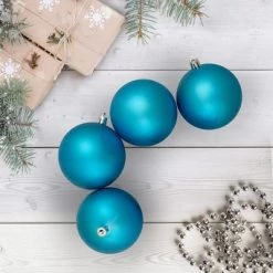 Flaunt your decorations in style with these festive ball ornaments. With a smooth, sophisticated finish, these ornaments will add a pop to your holiday decor. Shatterproof ornaments combine the beauty and luster of real glass with the unbreakable practicality of plastic.Product Features:32-piece set Color: turquoise blueFinish: matteBalls are equipped with silver ornament caps Pack of matching silver string hangers are included for optional use (ornament hooks not included)Recommended for indoor use onlyDimensions: 3.25″ (80mm) diameterMaterial(s): plasticSet includes 32 of the ball ornaments