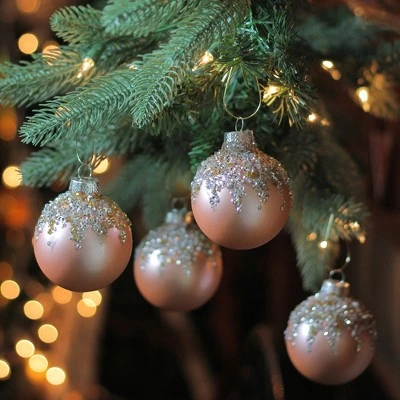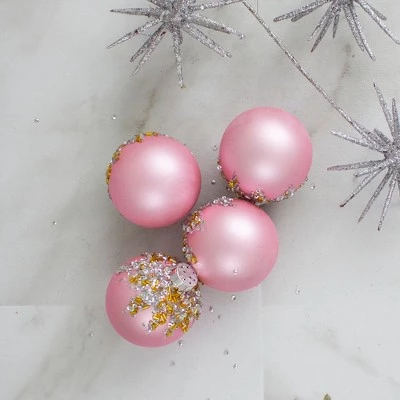 With a sequined embellishment finish, these ornaments will add just enough class to your holiday decor. These gorgeous ornaments are a timeless classic color are sure to match your most interesting Christmas decor! This special club pack will allow you to build your collection quickly and decorate with more possibilities. Product Features:4-piece set Color: pink, silver and goldFinish: matteEmbellished with gold and silver sequins and beadsEquipped with silver ornament caps (ornament hooks are not included) Dimensions: 3.25″ (80mm) diameter Material(s): glass/plastic/metal