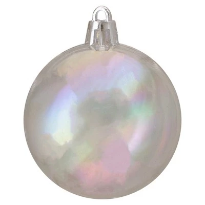 Make use of these shatterproof ornaments to augment your holiday decoration. This exclusive assortment will allow you to build your collection quickly and decorate with more possibilities. Add them to your trees and garlands for an exquisite accent.Product Features:60-piece set Color: clear iridescentFinish: shinyBalls are equipped with silver ornament caps covering a tiny pin hole size openingOrnaments come ready-to-hang on silver cordsRecommended for indoor decorative use onlyOrnaments are shatterproof for your safety and convenienceDimensions: 2.5″ (60mm) diameterMaterial(s): plasticSet includes 60 of the ball ornaments