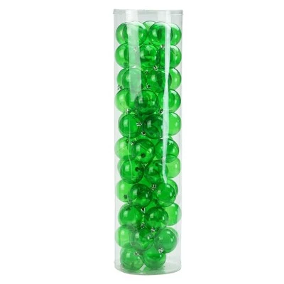 These beautiful ball ornaments are sure to add some sparkle to your dwelling! With a smooth, sophisticated finish, these ornaments will add a pop to your holiday decor. They are an excellent accent for your trees or garlands.Product Features:60-piece setColor: Xmas greenFinish: transparentBalls are equipped with silver ornament capsFully dimensional shatterproof ornamentPack of matching silver string hangers are included for optional use (ornament hooks not included)Dimensions: 2.5″ (60mm) diameterMaterial(s): plastic
