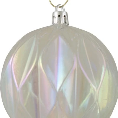Use these shatterproof ornaments to enhance your holiday tree decoration. These ornaments have a rhombus cut pattern, clear in color with a touch of rainbow color when they shine in the light, with a blend of beauty and luster they are sure to transform the atmosphere more inviting and pleasant. This holiday, make your abode a perfect place for a get-together with these adornments.Product Features:6-piece setColor: clearFinish: iridescentRhombus cut patternBalls are equipped with silver cords for hangingDimensions: 3″ diameter (70mm) Material(s): plasticNote: Set includes 6 of the ball ornaments