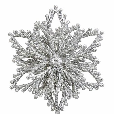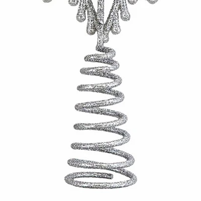 Beautiful Silver Glittered Layered Snowflake Tree Topper With A Glittered Spiral Stem To Fit On A Mini Tree.. Indoor. Imported. Perfect seasonal and special occasion décor any time of year.Old World Christmas glass ornaments and glass tree toppers are created using the same techniques that originated in the 1800’s. Beautifully crafted traditional, contemporary and keepsake designs, each piece is designed in mouth-blown glass from carved molds, hand-painted and glittered.