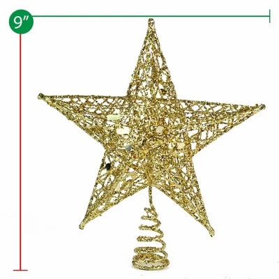 - This star tree topper measures 9″ x 8″ and is crafted of high-quality unique gold shimmery wire.