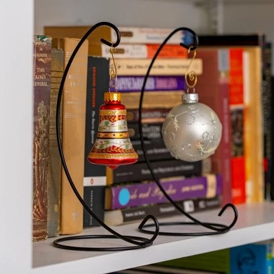 - Each iron stand is 9″ tall by 4″ wide and has a curved in hanger for hanging any type of ornaments.
