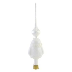 A Mouth Blown, Hand Painted Elegant Vintage Santa Tree Topper With Spire Hand-Glittered In White Super Fine Glitter, Snow Ice Crystals And Gold Accents.. New. Measurements 13.00 In H X 3.50 In W X 2.50 In D. . Made Of Glass. No Assembly Required. Indoor Use Only. Imported
