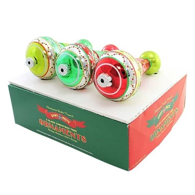 Holidays A Time For Friends And Family. Decorate The Family Tree Or Give As A Gift This Holiday Season. Holiday Splendor Decorated Shapes, Set Of 3, Is A Perfect Mix Of Tradition And Whimsy, In Hues Of Green, Lime Green, Red And Silver. The Ornaments Are Accented With Just The Right Touch Of Glitter Highlighting The Series Of Stripes.. New. Comes Packaged In A Box.. Measurements 7.0 In H X 3.0 In W X 3.0 In D. . Indoor. Imported. Shiny-Brite by Christopher Radko recreates the joy and style of a midcentury American Christmas. True to the original design, each piece is handcrafted in China created using shapes, palettes and motifs derived from antique ornaments.Turn back the clock and celebrate Christmas – American Style.