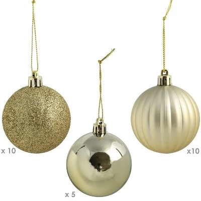 • SET OF 25 BAUBLES: Package includes 10 glitter, 10 grooved and 5 shiny finished ornaments