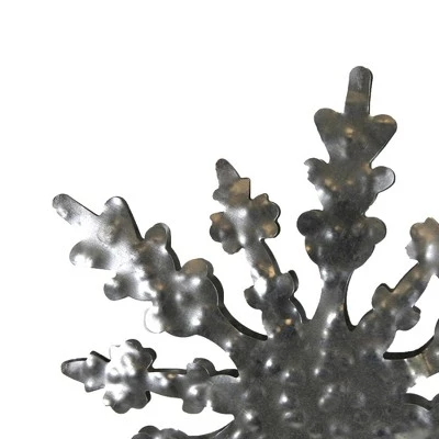 A Hammered Metal Tree Topper Shaped Like A Snowflake Attached To A Metal Spiral Stand.. New. Measurements 13.0 In H X 8.0 In W X 2.5 In D. . Made Of Metal. No Assembly Required. Indoor Use Only. Imported