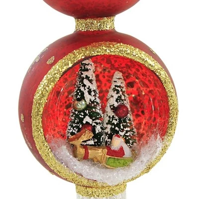 Vintage Looking Tree Topper In Layers Of Red And Gold With A Reflector In The Bottom Ball. The Reflector Holds Mini Bottle Brush Trees Decorated With Tiny Beads With Santa In Sleigh And Deer In The Woods.. New.. Measurements 13.5 In H X 2.75 In W X 2 In D. . Made Of Glass. No Assembly Required. Indoor Use Only. Imported. NOTE: Not A Toy, For Decorative Use Only.