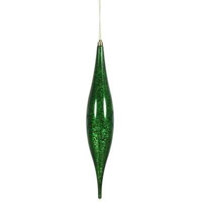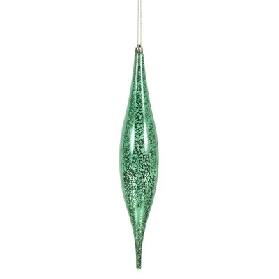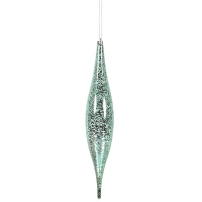 Vickerman 13″ Mercury Rain Drop Christmas Ornament. This ornament is made of shatterproof plastic, and features a shiny mercury finish. Each ornament has a drilled cap with threaded wire for easy decorating.