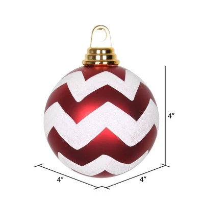 Vickerman Matte Chevron Ball Christmas Ornament. This ornament is made from shatterproof plastic and features a soft matte finish with a glitter accented Chevron pattern, as well as a drilled and wired secure cap for reliable hanging.